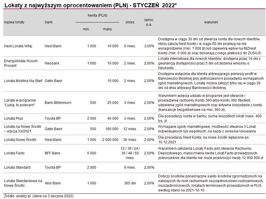 Najlepsze lokaty na rynku (styczeń 2022 r.)