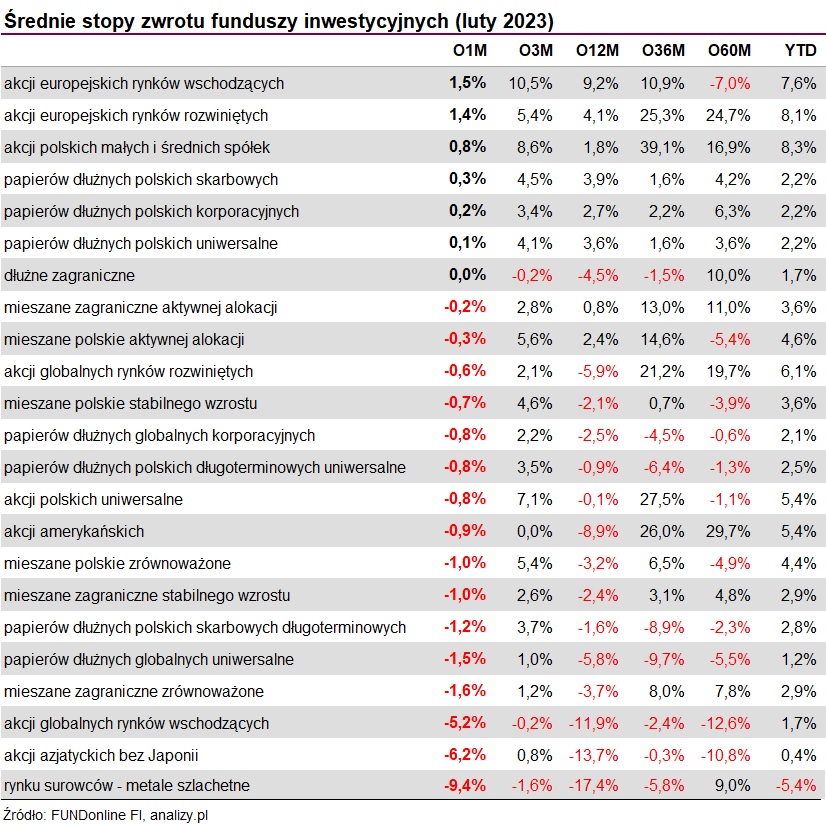 Wyniki funduszy inwestycyjnych (luty 2023)