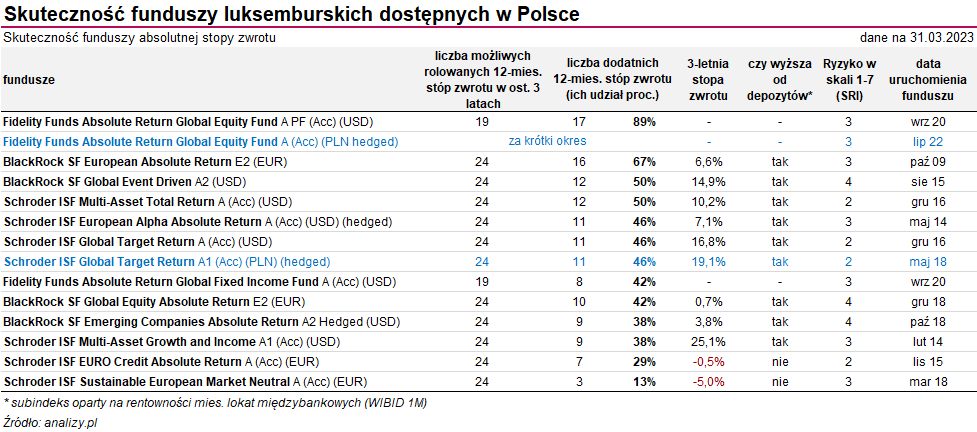 Od tej edycji do raportu dodajemy fundusze luksemburskie dostępne w Polsce. W ich ofercie mamy kilkanaście funduszy absolute return.