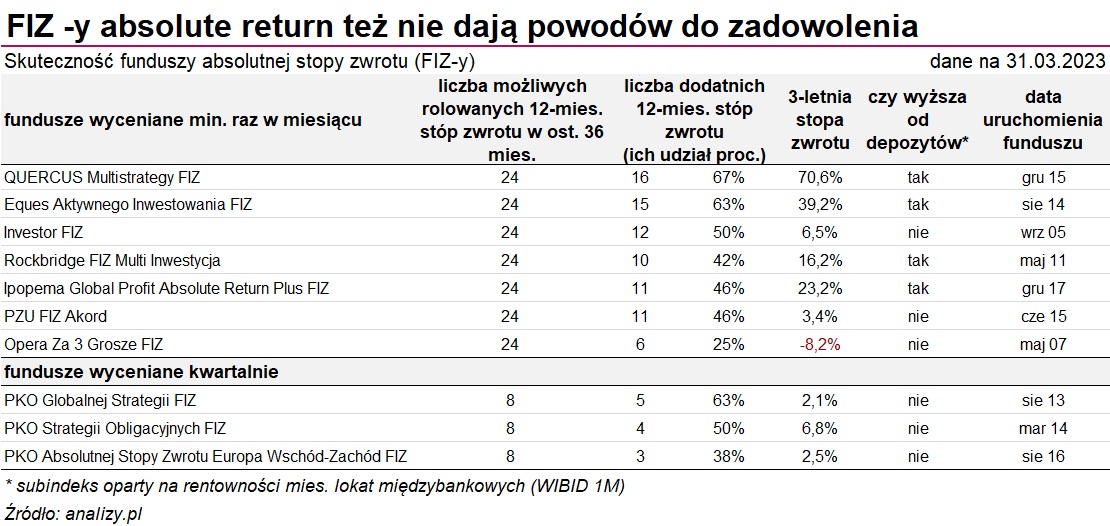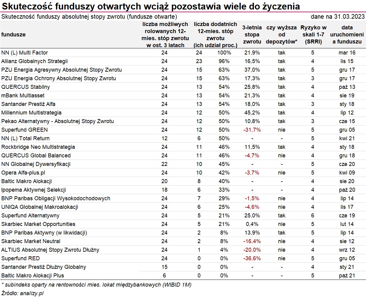 Skuteczność funduszy absolutnej stopy zwrotu (marzec 2023) - dużej poprawy nie widać