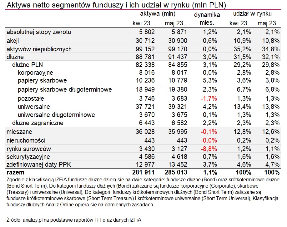 Aktywa funduszy inwestycyjnych (maj 2023)