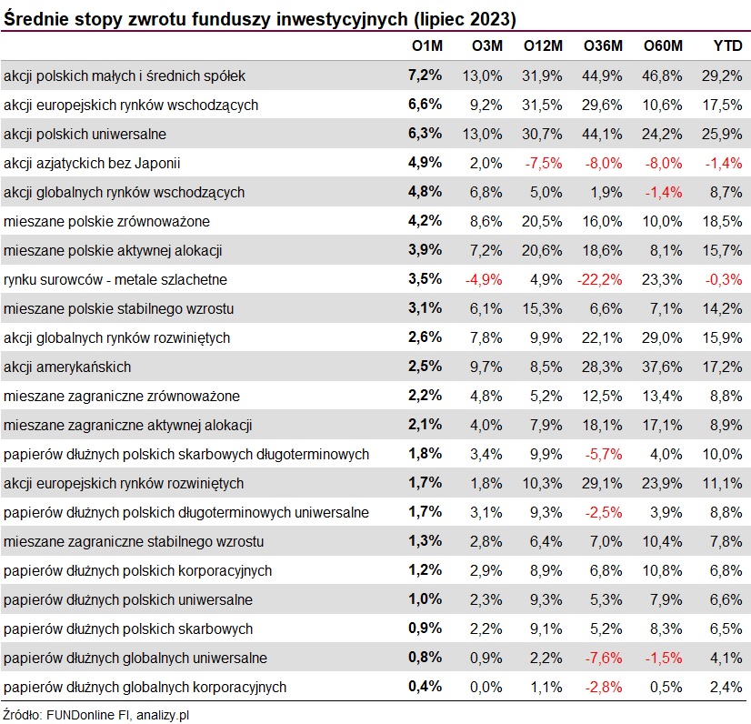 Wyniki funduszy inwestycyjnych (lipiec 2023)