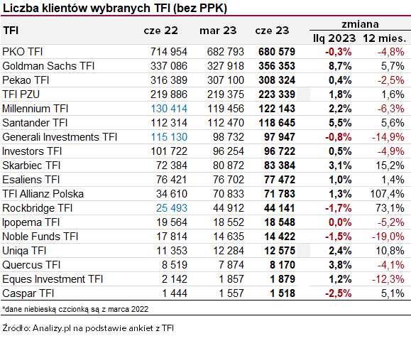 Liczba klientów TFI (czerwiec 2023)