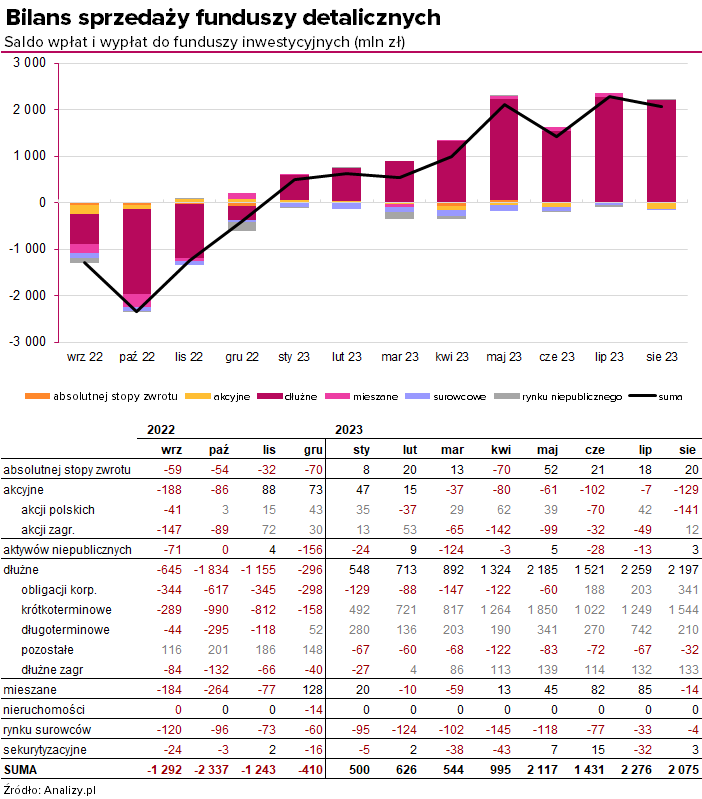 Saldo wpłat i wypłat do funduszy inwestycyjnych (sierpień 2023)