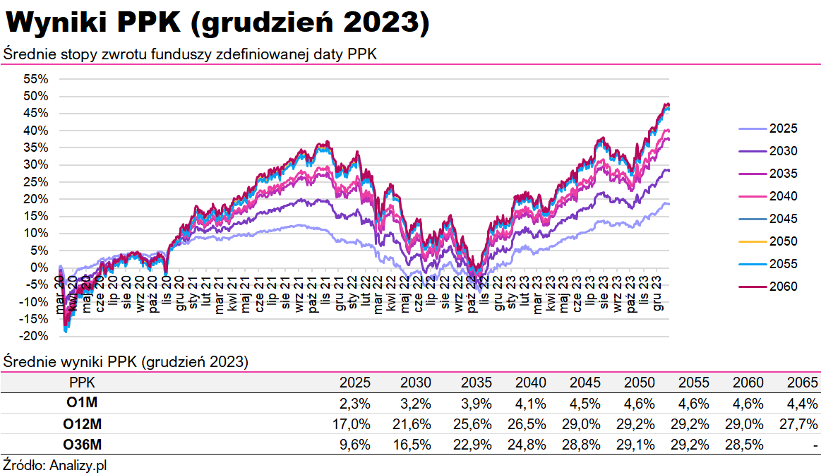 Ranking PPK (grudzień 2023) – w rok fundusze zdefiniowanej daty zarobiły przeszło 26%
