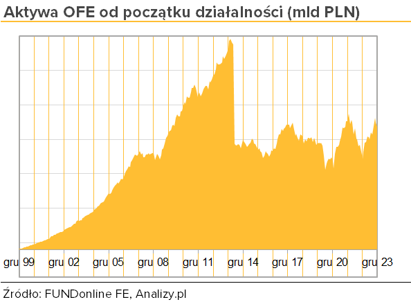 W grudniu 2023 roku większość giełd, z warszawską włącznie, kontynuowała wzrosty. Przełożyło się to na wyniki funduszy emerytalnych, które uzyskały dodatnie wyniki i zwiększyły aktywa. Wynik całego roku 2023 jest iście imponujący: aktywa OFE zwiększyły się o 33%, a same fundusze zarobiły średnio 36,5%. To jedno z najlepszych osiągnięć w historii.