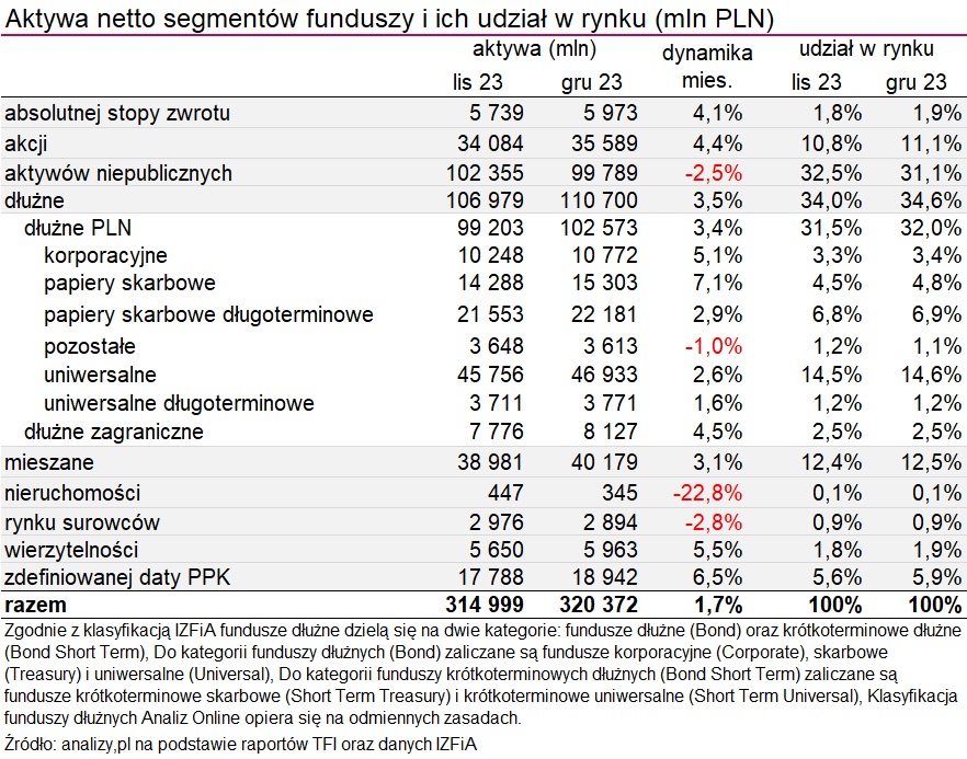 Aktywa funduszy inwestycyjnych (grudzień 2023)