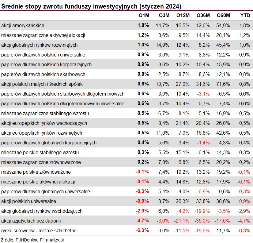 Wyniki funduszy inwestycyjnych (styczeń 2024)