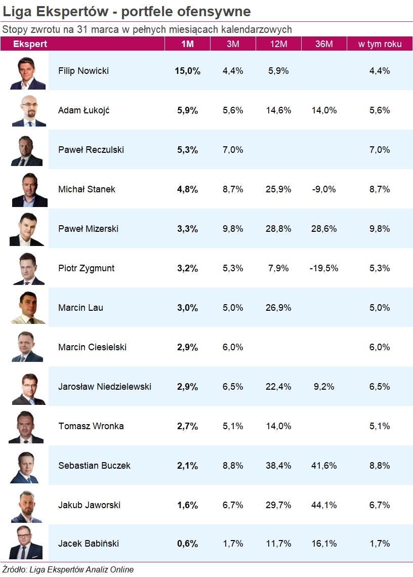 Licząc od początku roku najwięcej zyskuje Sebastian Buczek (+2,7 proc.). Najgorzej wypada natomiast Jacek Babiński, który w takim ujęciu jako jedyny notuje 0,3 proc. straty.