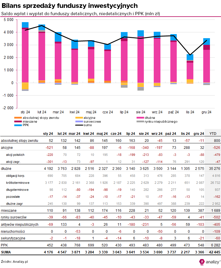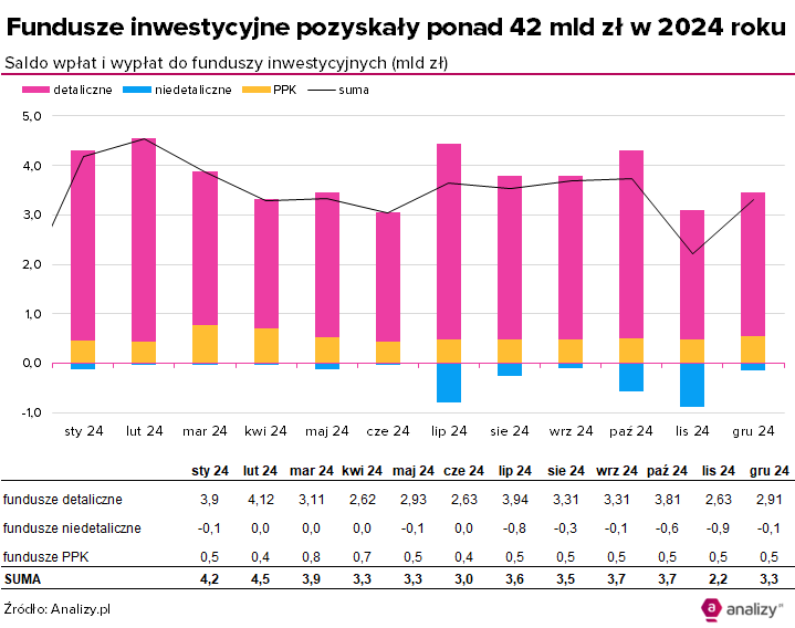 Saldo wpłat i wypłat do funduszy inwestycyjnych (grudzień 2024) - rekordowy rok