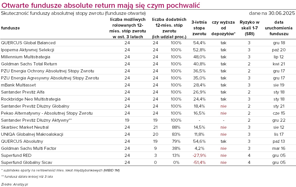 Skuteczność funduszy absolutnej stopy zwrotu (czerwiec 2025) - zarządzający trzymają formę