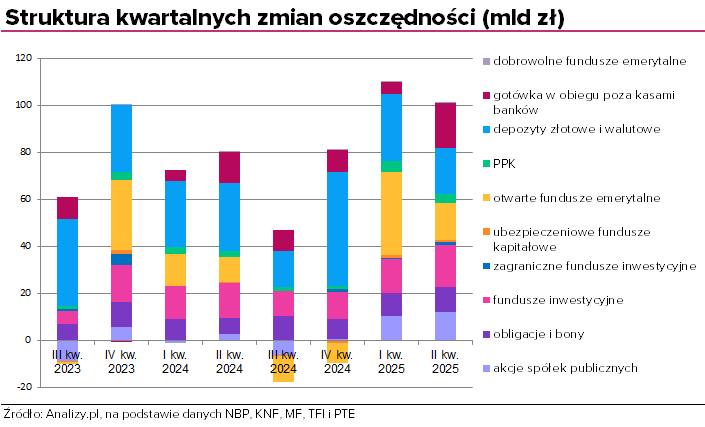 Struktura oszczędności gospodarstw domowych (czerwiec 2025) - ponad 100 mld zł w 3 mies.