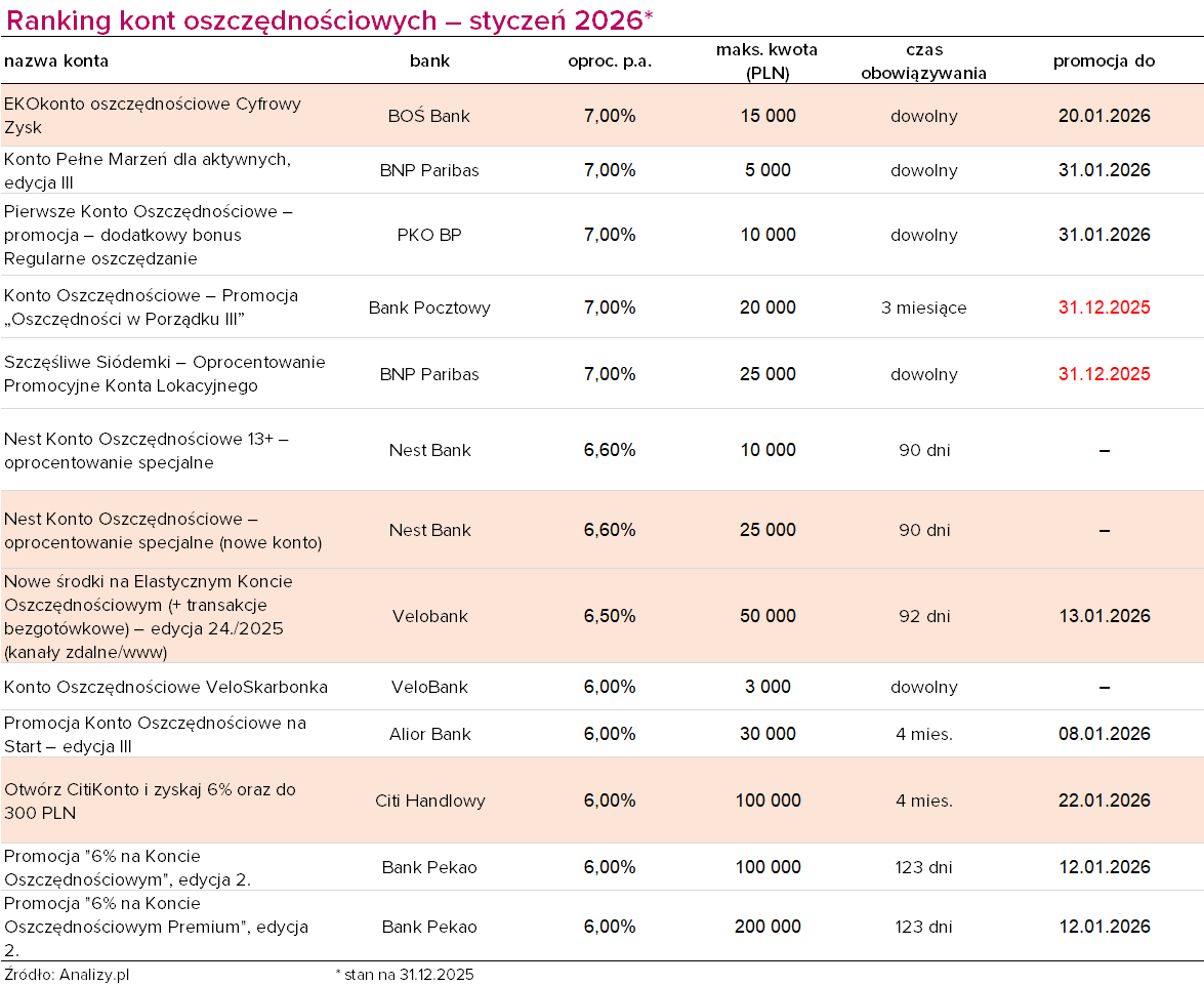 Pomijamy rachunki, których promocja kończy się z końcem roku. Gdy pojawią się w ich miejsce nowe oferty, napiszemy o nich na stronie Analizy.pl