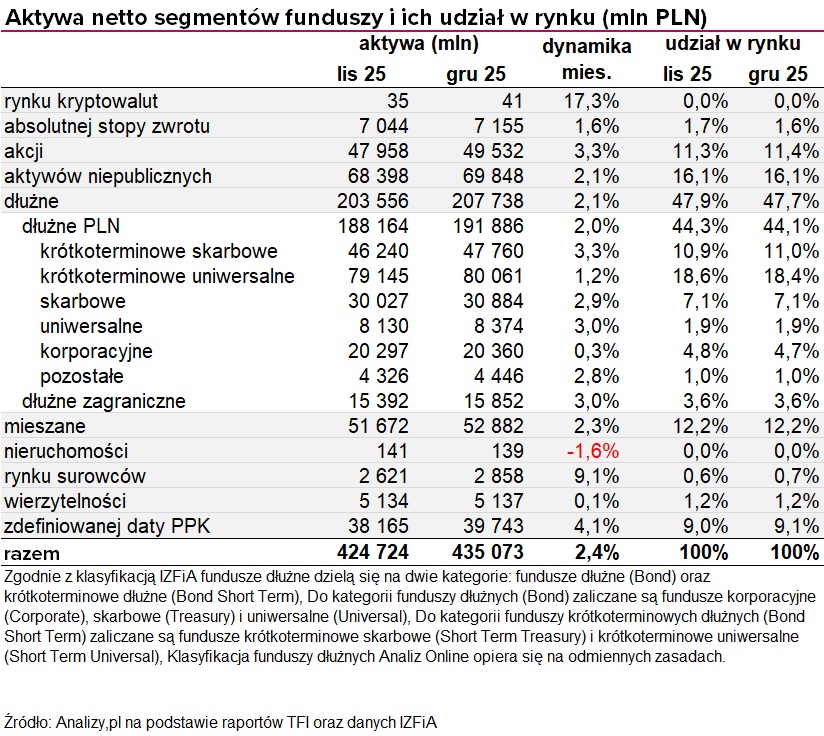 Aktywa funduszy inwestycyjnych (grudzień 2025)