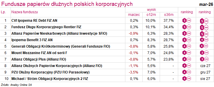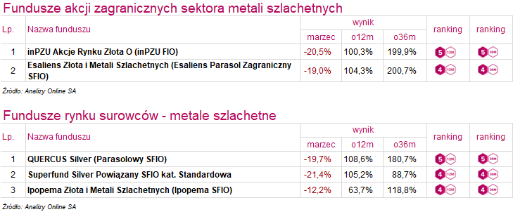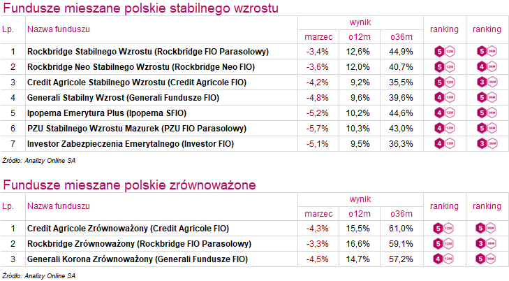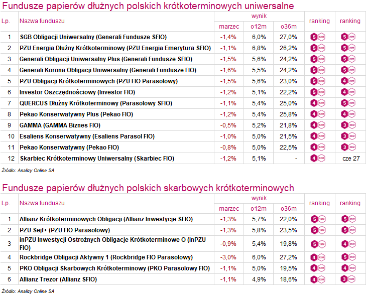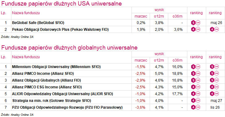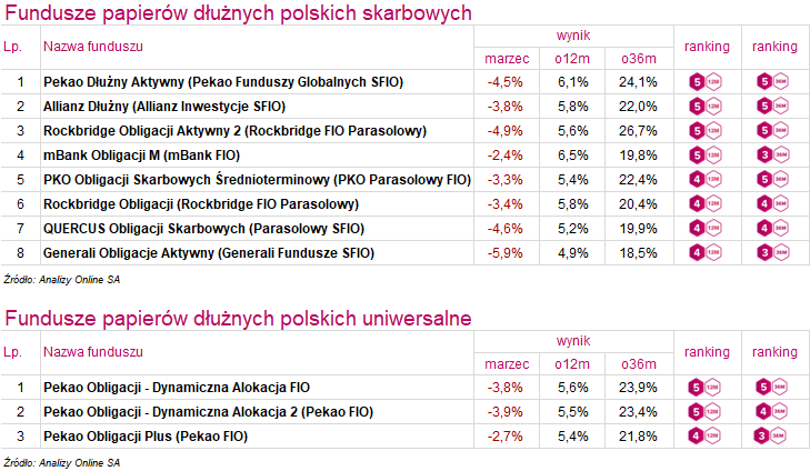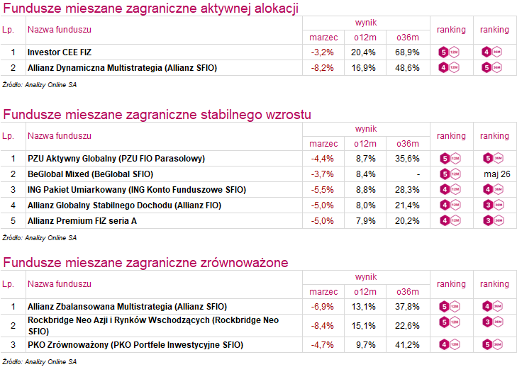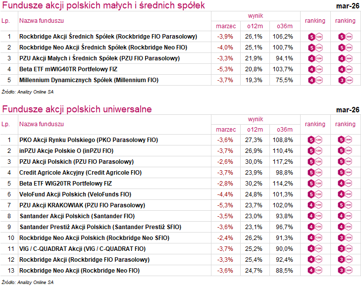 Ranking funduszy inwestycyjnych (marzec 2026)
