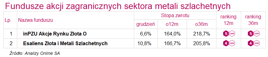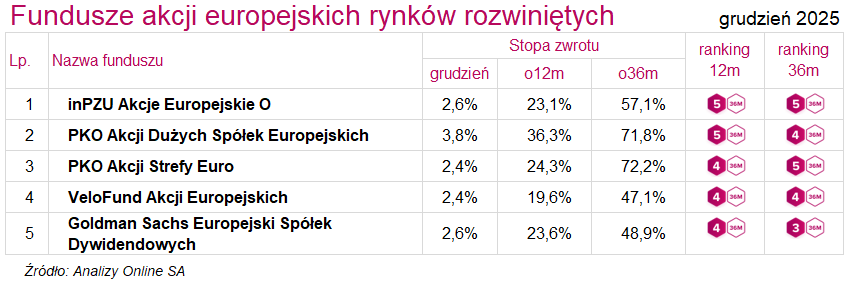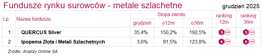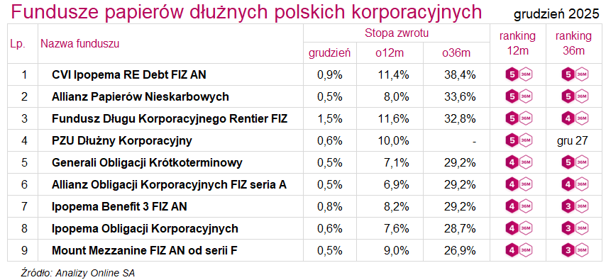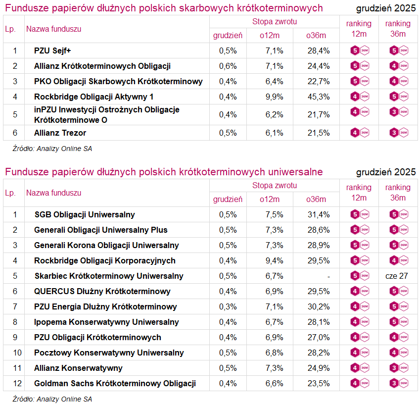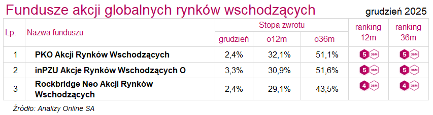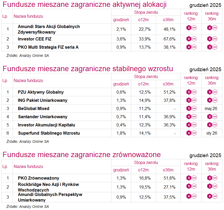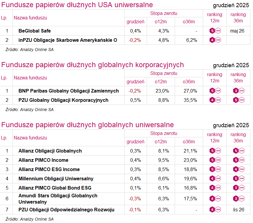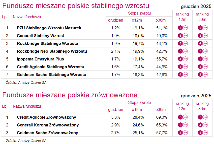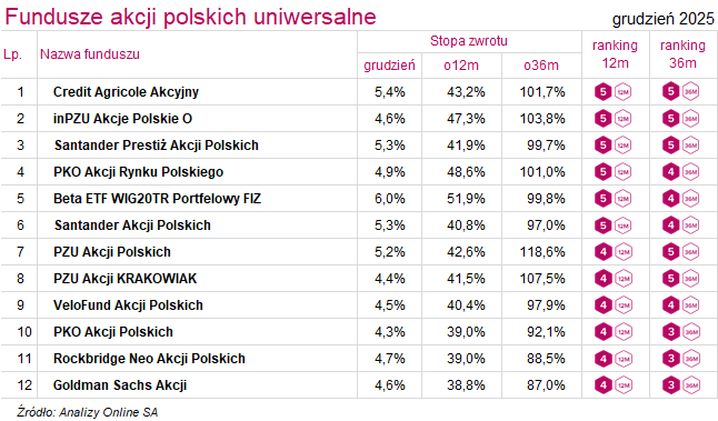 Ranking funduszy inwestycyjnych (grudzień 2025)