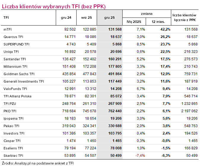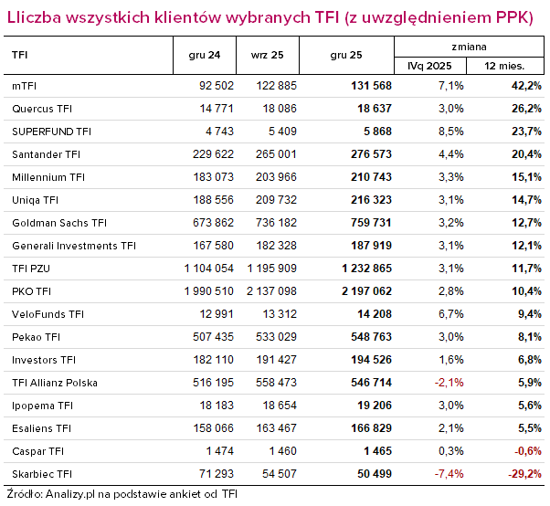 Liczba klientów TFI (grudzień 2025)