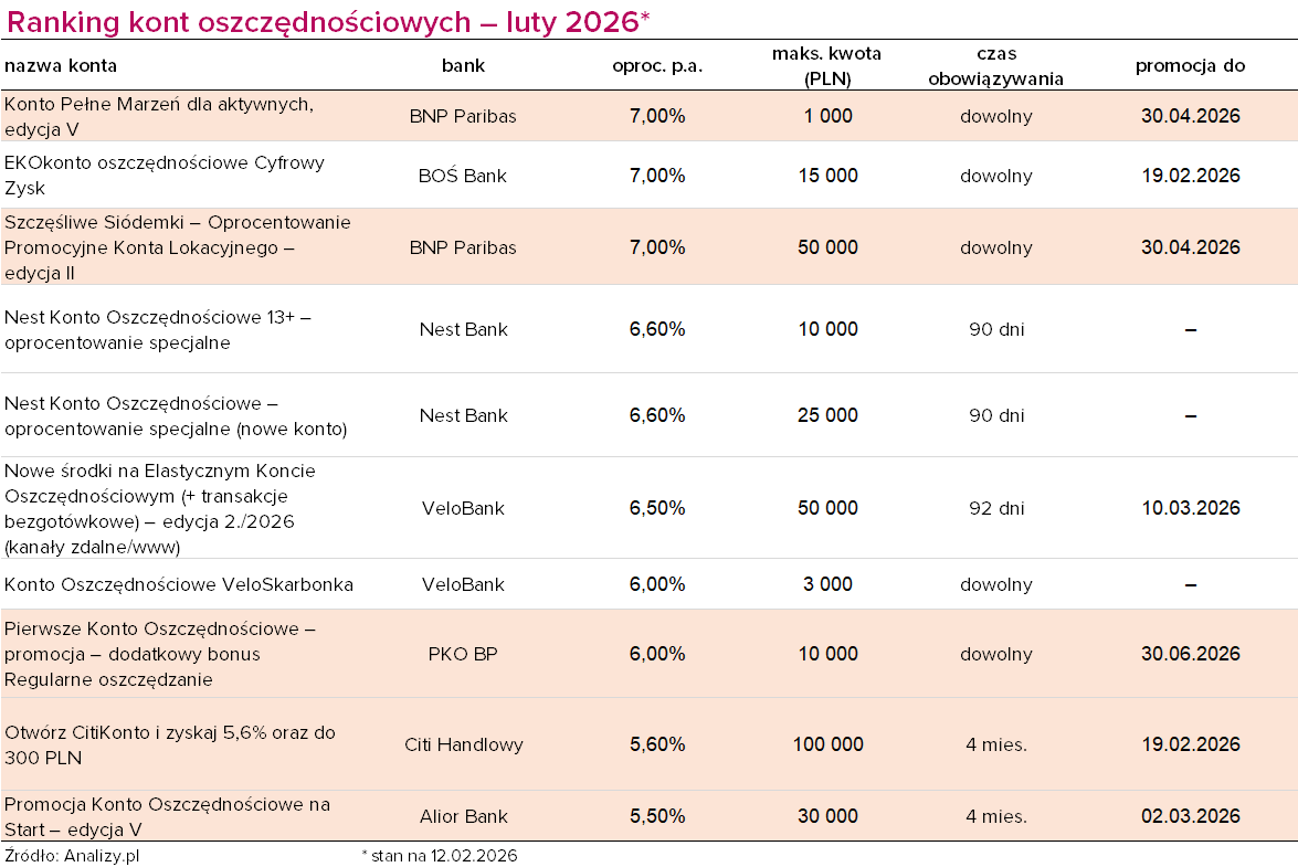 Ranking kont oszczędnościowych (luty 2026)