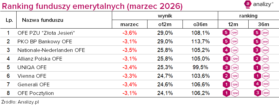 Podsumowanie rynku funduszy emerytalnych (marzec 2026)
