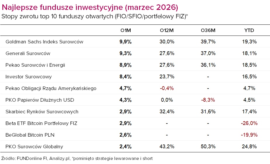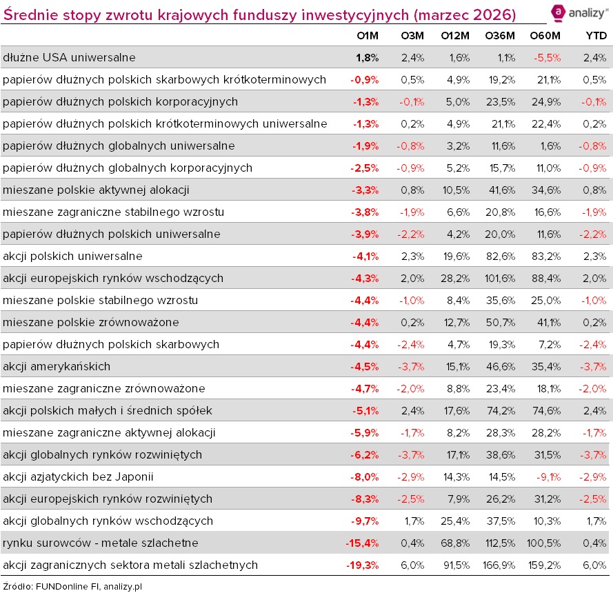 Wyniki funduszy inwestycyjnych (marzec 2026)