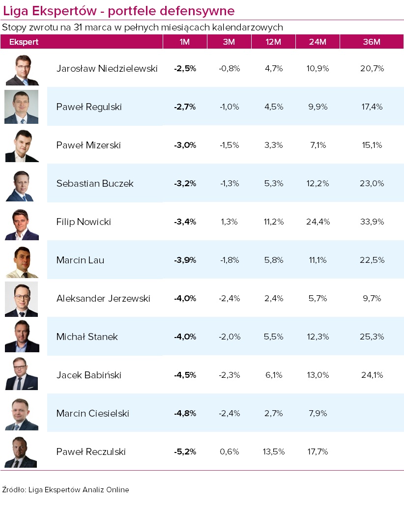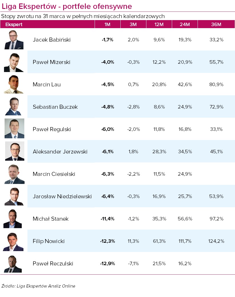 W marcu nie było już walki o najwyższy zysk, lecz o jak najmniejszą stratę. Po szoku na rynku ropy i gwałtownym pogorszeniu nastrojów wszystkie portfele Ligi Ekspertów znalazły się pod kreską. W ofensywnych najlepiej bronił się Jacek Babiński, a w defensywnych Jarosław Niedzielewski.