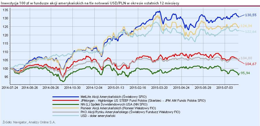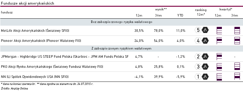 W konsekwencji różnica między najwyższym a najniższym wynikiem funduszy akcji amerykańskich za okres ostatnich 12 miesięcy wyniosła aż 34,6 pkt proc. Dodatkowo, zdaniem ekspertów, w kolejnych miesiącach możemy mieć do czynienia z dalszym umacnianiem się amerykańskiej waluty, zwłaszcza po zapowiadanym dokonaniu podwyżek stóp procentowych w USA. Zgodnie z zapowiedziami, taki scenariusz może być zrealizowany jeszcze jesienią br.