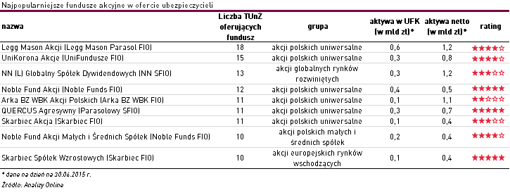 Najpopularniejsze fundusze akcyjne w ofercie ubezpieczycieli