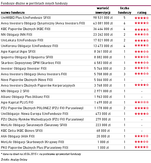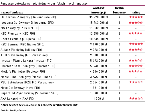 Na koniec pierwszego półrocza 2015 r. ponad 60 krajowych funduszy zostało docenionych przez zarządzających z innych TFI na tyle, że trafiły do portfeli ich rozwiązań. W ten sposób ulokowano w nich prawie 0,5 mld zł. W większości przypadków odbywało się to za pośrednictwem tzw. FoF-ów (fund of funds), czyli funduszy, których zarządzający dobierają do portfela najlepsze ich zdaniem rozwiązania z danej klasy aktywów. Obecnie mają je w ofercie Skarbiec TFI i Superfund TFI, a także banki współpracujące z TFI: Deutsche Bank (DB Funds FIO, których zarządzający wykorzystują specjalną strategię Best Managers), BGŻ oraz ING Bank Śląski.