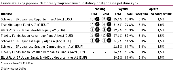 W tym gronie na koniec listopada br. najwyższą ocenę w rankingu w rocznym i trzyletnim horyzoncie otrzymał Schroder ISF Japanese Opportunities A (Acc) (USD)