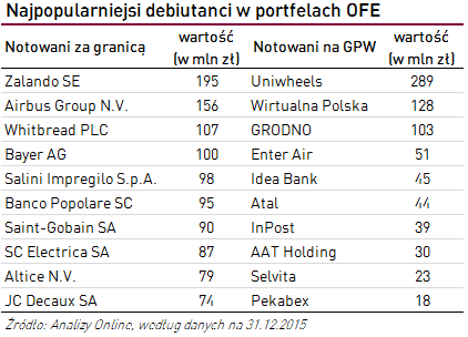 Najwięcej środków zostało ulokowanych w akcjach zeszłorocznych debiutantów na warszawskiej giełdzie - Uniwheels i Wirtualna Polska. Jeśli chodzi o najpopularniejsze spółki notowane za granicą, to przodują Zalando i Airbus Group.