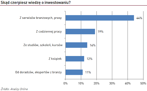 Co ciekawe, tylko 12% ankietowanych wiedzę o inwestowaniu czerpie z książek.