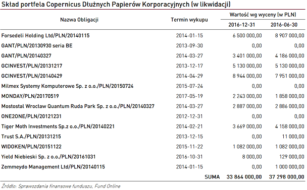 Copernicus Dłużnych Papierów Korporacyjnych jest w likwidacji od września 2014 r.