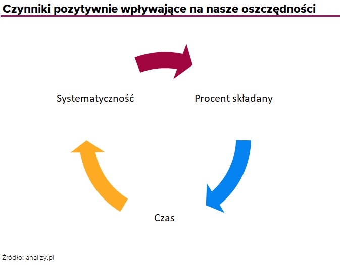 W realizacji naszych celów często przeszkadza nam przeświadczenie, że oszczędzanie jest dla tych, którzy mogą sobie na to pozwolić. Nic jednak bardziej mylnego. Nie musimy mieć zasobnego portfela, żeby budować zaplecze finansowe. Możemy zacząć już od niewielkich kwot. Jeśli zdecydujemy się na ulokowanie środków w fundusze inwestycyjne, to wystarczy 50 zł – od takiej sumy możemy pomnażać swoje środki np. na platformie inwestycyjnej KupFundusz.pl. Naszymi największymi sprzymierzeńcami w gromadzeniu oszczędności jest procent składany, systematyczność oraz czas. To właśnie te elementy – włącznie ze stopą zwrotu z inwestycji – będą determinowały to, jak szybko uda nam się zrealizować cele. Poniżej przybliżymy, w jaki sposób te czynniki wpływają na nasz kapitał.