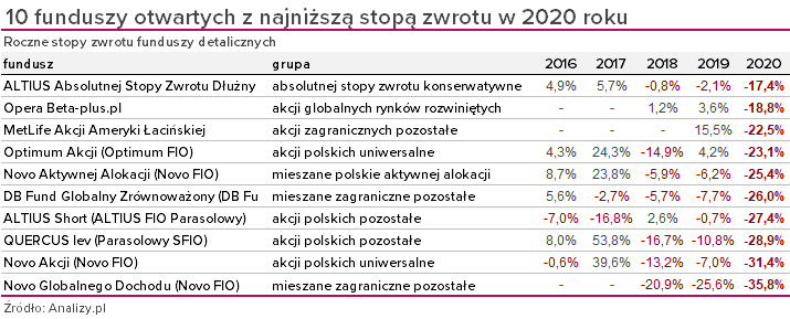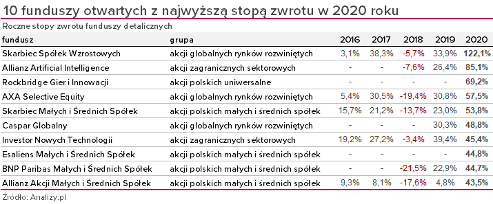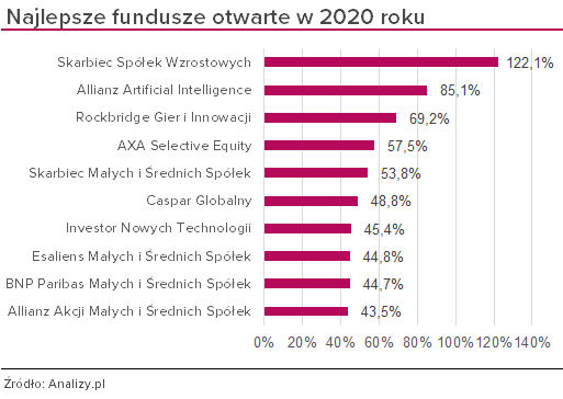 10 najlepszych i 10 najgorszych funduszy w 2020 roku