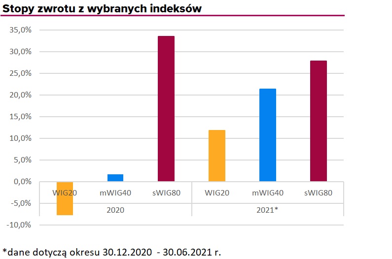 To było całkiem udane półrocze nie tylko dla wielu zagranicznych giełd, ale również dla stołecznego parkietu. Indeks szerokiego rynku (WIG) w czerwcu ustanowił nowe historyczne maksima, w ujęciu sześciu miesięcy zyskując +15,9%. W tym okresie najlepiej poradziły sobie małe spółki (z sWIG80), dotrzymując kroku najlepszym światowym indeksom. Całkiem dobrze wypadły również podmioty o większej kapitalizacji (z mWIG40). Co więcej, po słabej passie z początku roku również największe spółki wróciły do łask inwestorów, dostarczając dwucyfrowych zysków (+11,8%).
