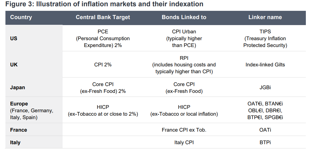 Chociaż dokładny mechanizm obliczania płatności może różnić się w zależności od kraju, większość linkerów jest zaprojektowane tak, aby spłata odsetek wzrastała i spadała wraz ze stopą inflacji. Każdy kraj ma swój indeks, o który waloryzowane są obligacje. W USA stosowany jest wskaźnik CPI (consumer price index – CPI), w Wielkiej Brytanii - indeks cen detalicznych (retail price index – RPI), a we Francji z kolei – indeks cen konsumenckich, ale z wyłączeniem tytoniu.
