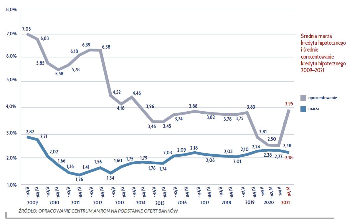 Banki w Polsce od lipca 2021 roku są zobowiązane przez KNF do oferowania kredytu mieszkaniowego po stałej stopie procentowej na co najmniej pięć lat (na rynku jest obecnie jedna oferta na 10 lat). Pojedyncze oferty tego typu pojawiały się już w 2020 roku. Według NBP średnia stopa oprocentowania kredytów mieszkaniowych o stałej stopie wyniosła dla gospodarstw domowych w lutym 5,6%.