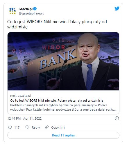 Tymczasem 13 kwietnia 2022 roku WIBOR 3M wynosił już 5,47%, a WIBOR 6M 5,76%.