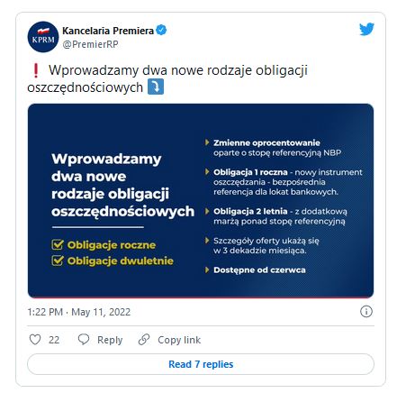 Dzień po przedstawieniu zapowiedzianego dwa tygodnie wcześniej pakietu wsparcia dla posiadaczy kredytów hipotecznych w złotych, premier Mateusz Morawiecki ogłosił plan zaoferowania nowych obligacji oszczędnościowych.