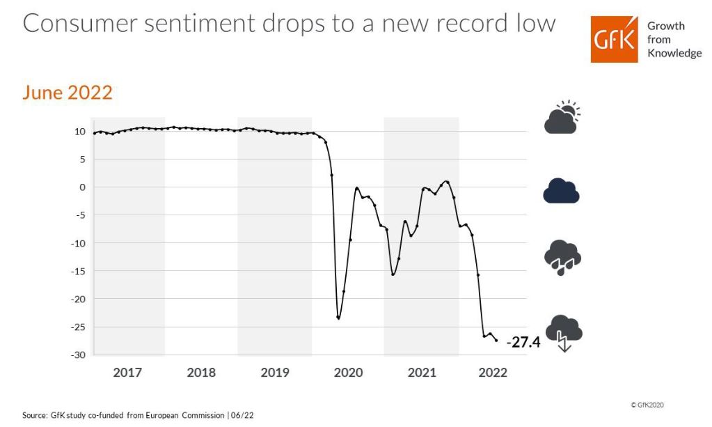 – Trwająca wojna w Ukrainie i zakłócenia w łańcuchach dostaw powodują gwałtowny wzrost cen energii i żywności, co skutkuje bardziej ponurym klimatem konsumenckim niż kiedykolwiek wcześniej – wyjaśnia Rolf Bürkl, ekspert ds. konsumentów GfK. – Przede wszystkim rosną koszty utrzymania, inflacja obecnie wynosi prawie osiem procent, ciążąc nastrojom konsumentów.