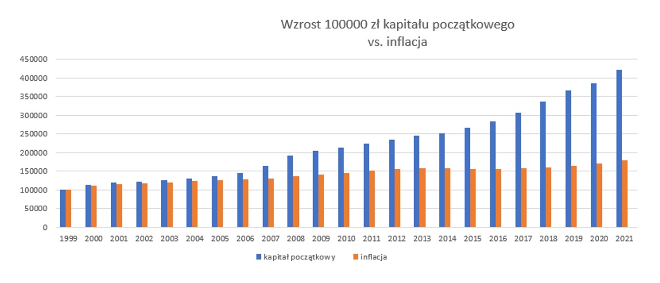 Aktualna wartość kapitału początkowego w początkowej kwocie 100 tys. wzrosła o ponad 320% do kwoty ponad 420 tys. zł.