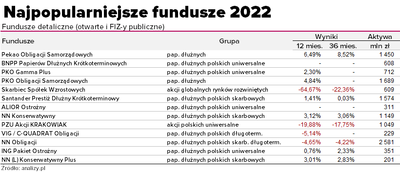 Za nami jeden z trudniejszych lat w branży funduszy. Spadki, które dotknęły zarówno rynki akcji, jak i obligacji, wywołały ucieczkę klientów z wielu funduszy. W sumie saldo wpłat i wypłat wyniosło ok. -24 mld zł, co odpowiada 8% rynku sprzed roku. Mimo kiepskiej koniunktury 13 funduszy zdołało pozyskać po ponad 100 mln zł.