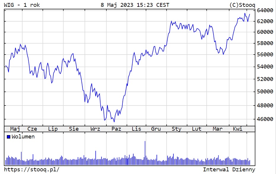 Notowania indeksu WIG za ostatnie 12 miesięcy: