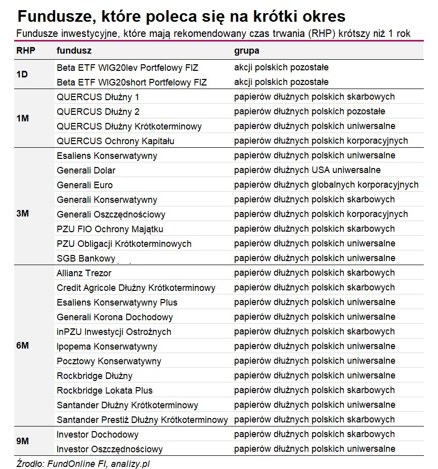 Fundusze, które poleca się na krótki okres