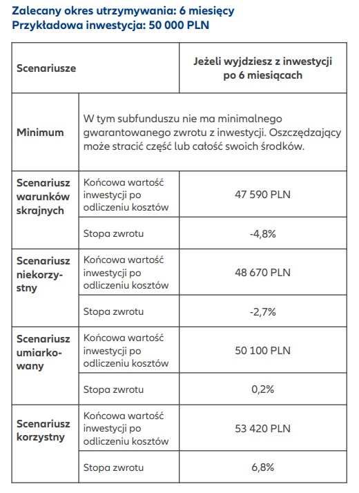 Scenariusze wyników dla funduszu Allianz Trezor: