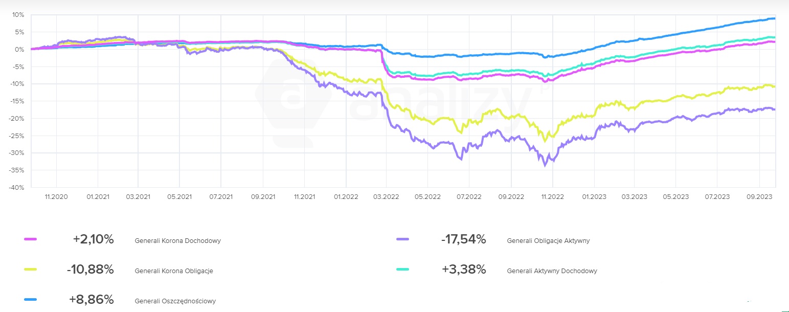 Notowania Generali Korona Dochodowy za ostatnie 3 lata. Dane na dzień 25 września: