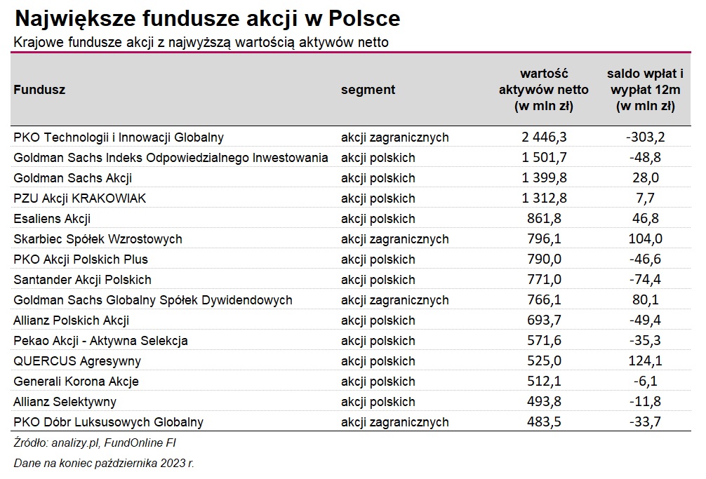 W październiku do funduszy akcji napłynęło najwięcej kapitału od 22 miesięcy. To dobra okazja, aby sprawdzić, które z nich mają obecnie największe aktywa pod zarządzaniem.
