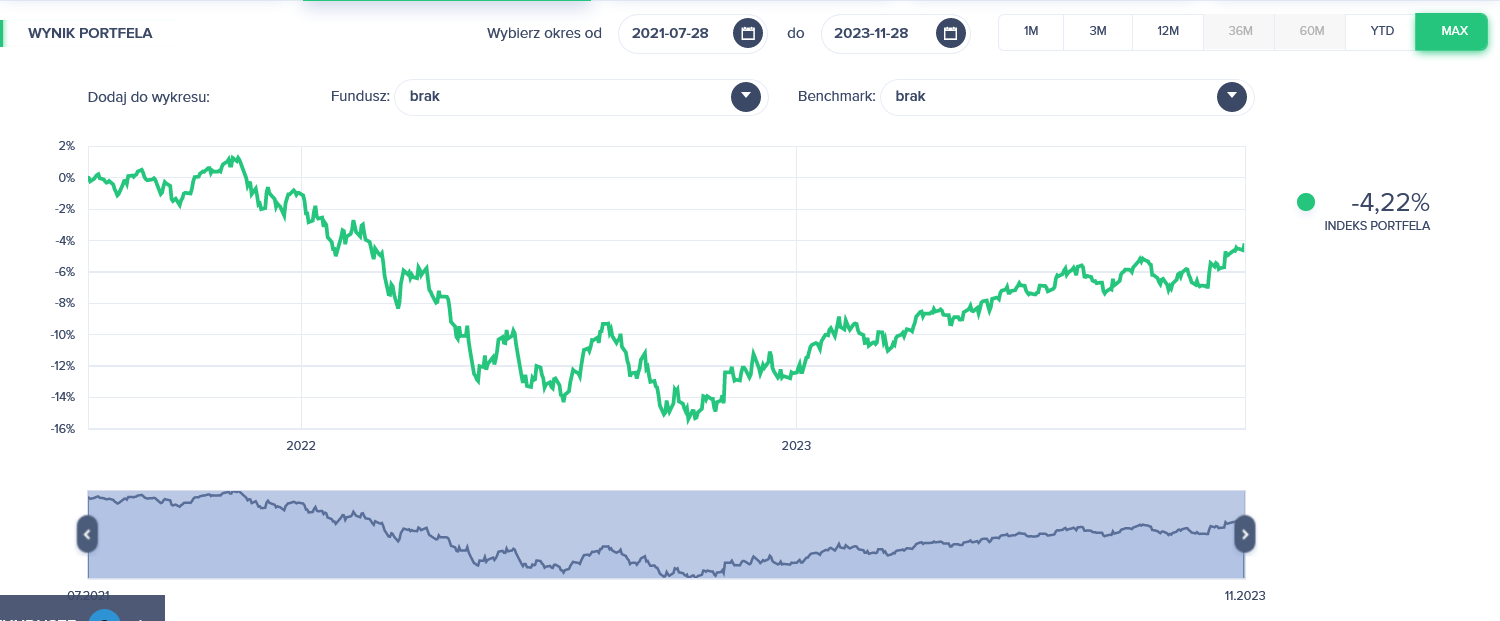 Od początku inwestycji portfel stracił 4,2%. W tym roku zarobił 9,4%.