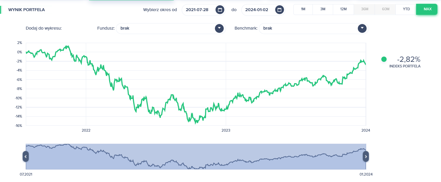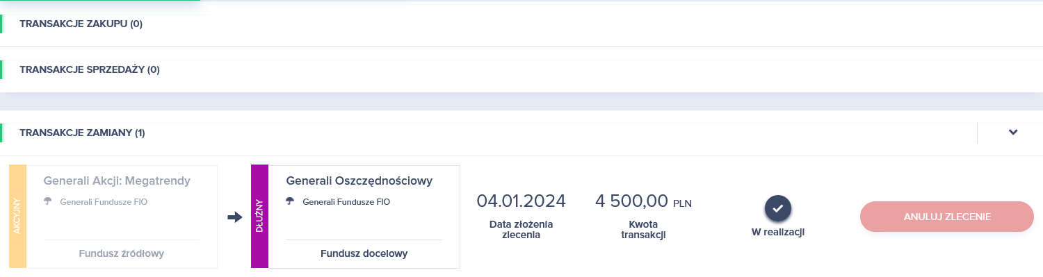 Rafał Bogusławski dokonał pierwszej zmiany w portfelu w 2024 roku. Tym razem zamienił fundusz akcji globalnych rynków rozwiniętych na fundusz papierów dłużnych polskich korporacyjnych w ramach tego samego parasola.