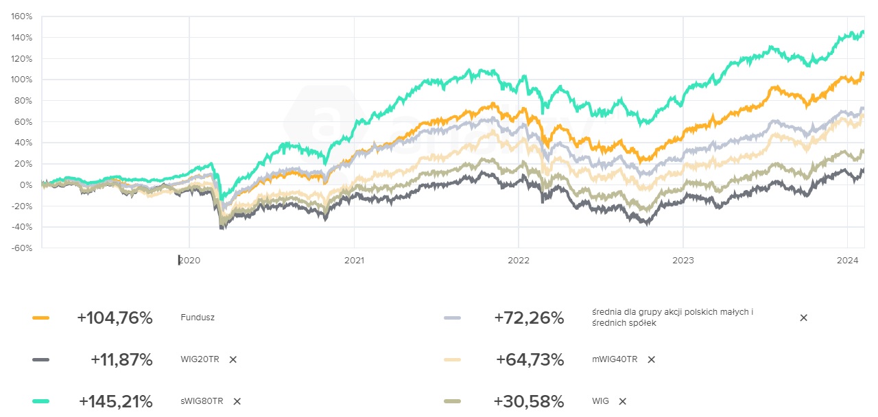 7. Santander Akcji Małych i Średnich Spółek (+104,8 proc.)